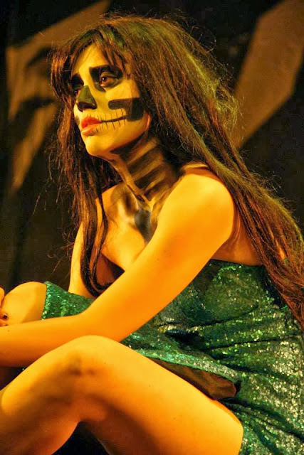 1) Ação (1): tudo que acontece numa peça de teatro, tudo o que fazem os personagens. 2) Ação (2): manifestação de uma causa. Movimento. Batalha. Feito. É a exposição animada do discurso. Ato. Desempenhar papéis. Desenvolver ações. 3) Ação exterior: pose ou gesto do ator visível para o espectador. 4) Ação interior: o ato de sentir (do ator) é uma ação interior. 5) Acessórios: complemento do figurino. 6) Ademanes: movimentos (principalmente das mãos.). Para exprimir idéias acenos, gestos, sinais, trejeitos. Gestos afetados, amaneirados. 7) Alegorias: exposição de um pensamento sob forma figurada. Ficção que representa uma coisa para dar idéia de outra. 8) Antagonista: personagem que se opõe à ação da personagem protagonista. 9) Aparte: comentário feito por um personagem, supostamente não ouvido pelos demais que estão em cena. O aparte pode ser dado diretamente à platéia ou na forma de uma fala do personagem para si mesmo. 10) Arena: área central, coberta de areia nos antigos circos roma...